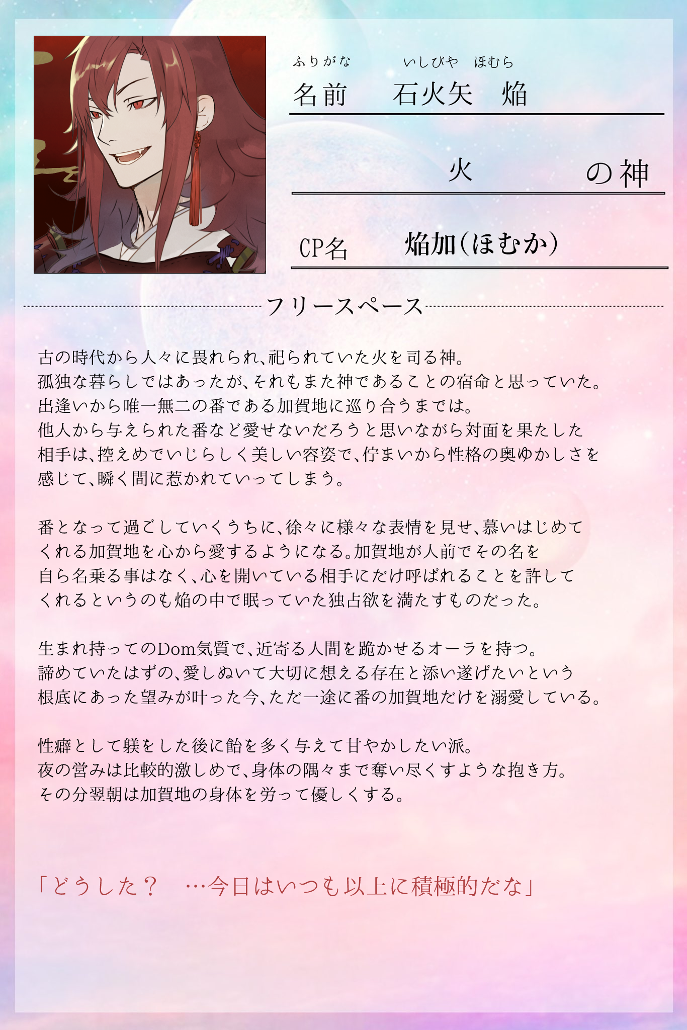 石火矢 焔(火の神)・・・CPタグ #焔加