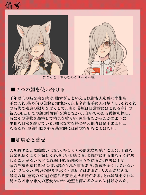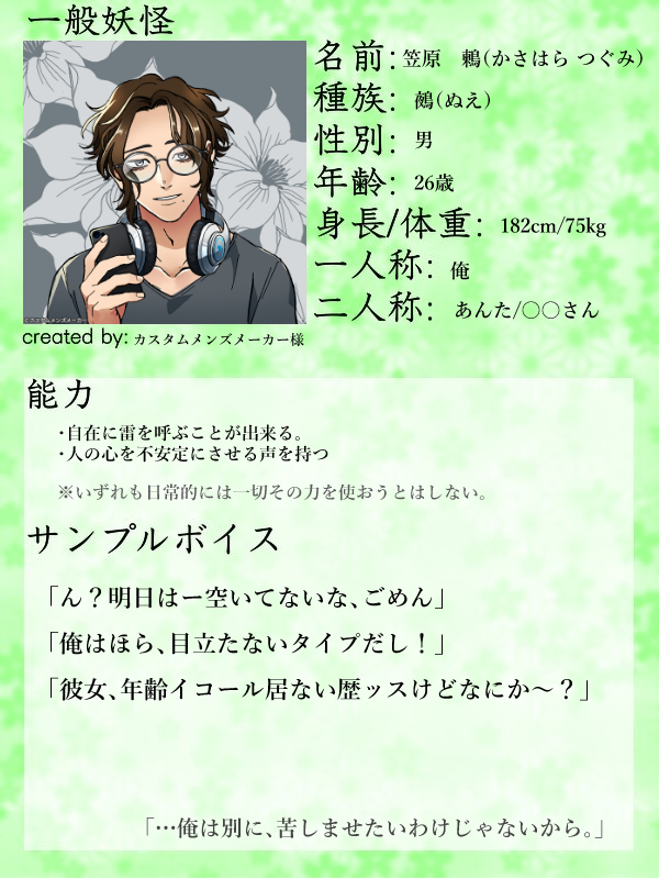 一般妖怪 「鵺(ぬえ)」 笠原 鶫(かさはら つぐみ)