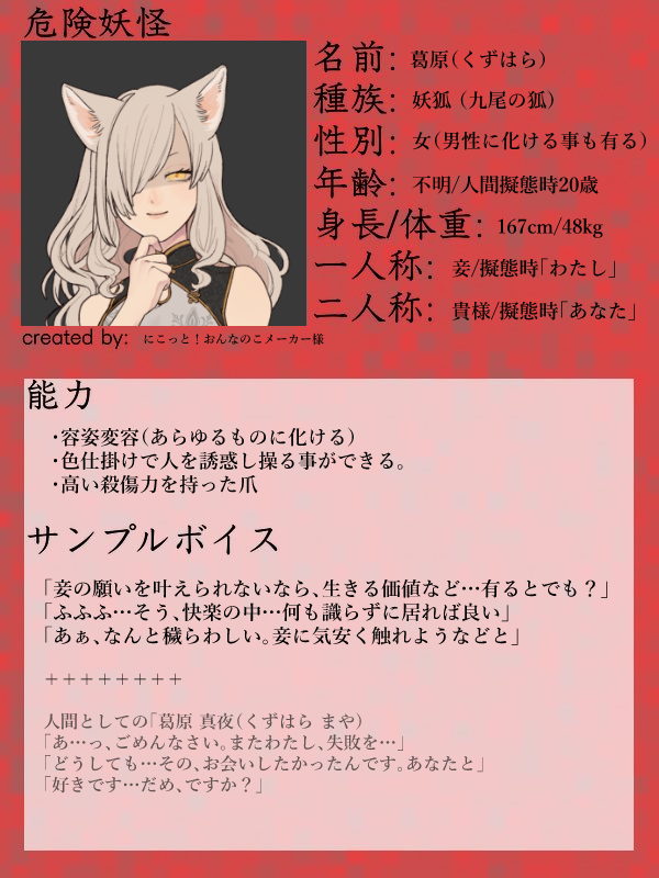 危険妖怪 「妖狐(九尾の狐)」 葛原(くずはら)